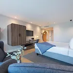 Die Zimmer verfügen über einen Patio und einen Balkon und sind zudem mit einem Schreibtisch ausgestattet. In einigen Zimmern gibt es ein privates Bad mit einer begehbaren Dusche.